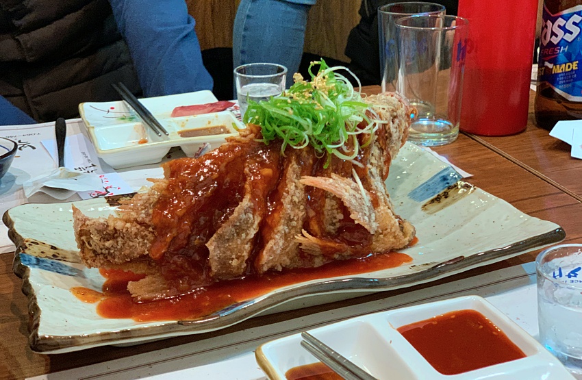 바삭하고 담백한 우럭튀김. 코스 요리 같이 나오는 음식들이 하나같이 다 애정하는 음식들이라 술이 날 마셨던 것 같다. 맛있고 즐겁게 식사를 마치고 뒷풀이로 맥주까지 한잔 했던 날, 너무 반가웠고 또 아쉬웠고 즐거웠다.