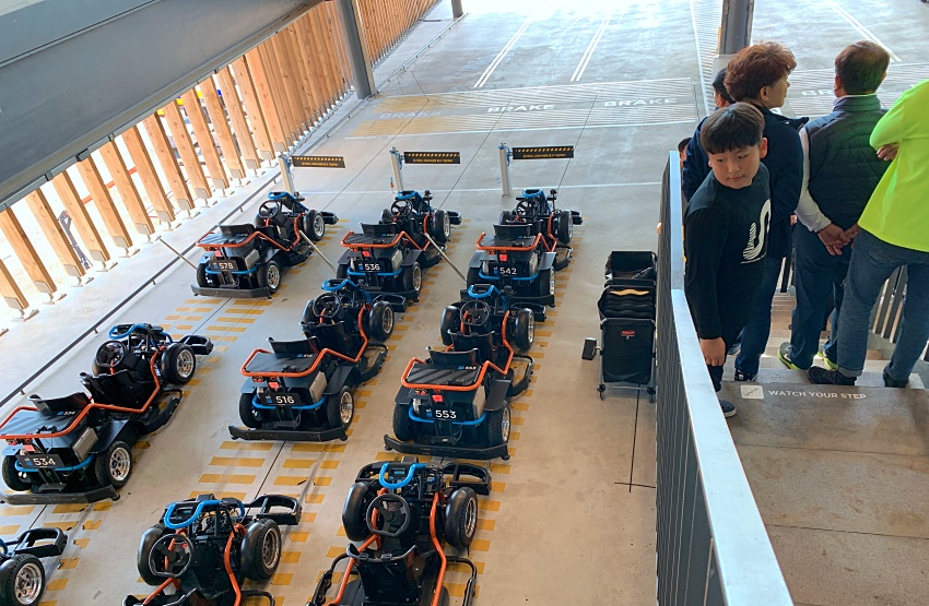 혼자 탑승이 가능하지만 중학생이하의 경우 반드시 동승을 해야한다는 조건이 있다. 카트는 자율주행이 가능하고 레이싱 후 탑승장으로 돌아올 때는 자율주행으로 운전자가 제어권을 상실한다. 알아서 올라옴.