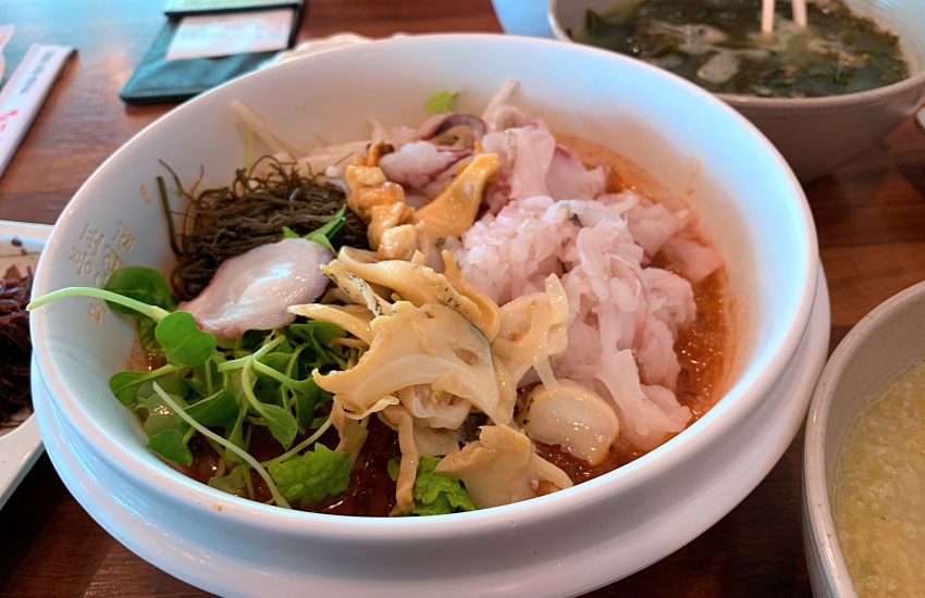 맛있고 고급스러운 물회다. 독특한 물회소스가 여러 해산물과 어울려 그 감칠맛을 더해주기 때문에 중독성 있는 음식이 되는듯하다.