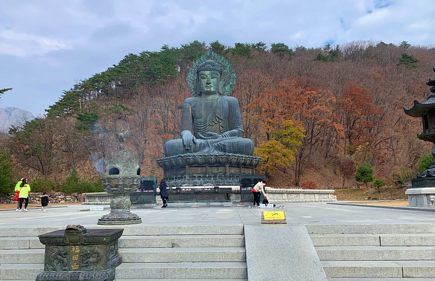 설악산 국립공원 케이블카를 타고 내려와 옆에 있는 절로 이동을 하면서 찍은 불상.