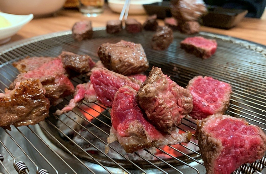 숯은 완전 좋지는 않지만 맛있는 한우에 불향을 입히기에는 충분했다.