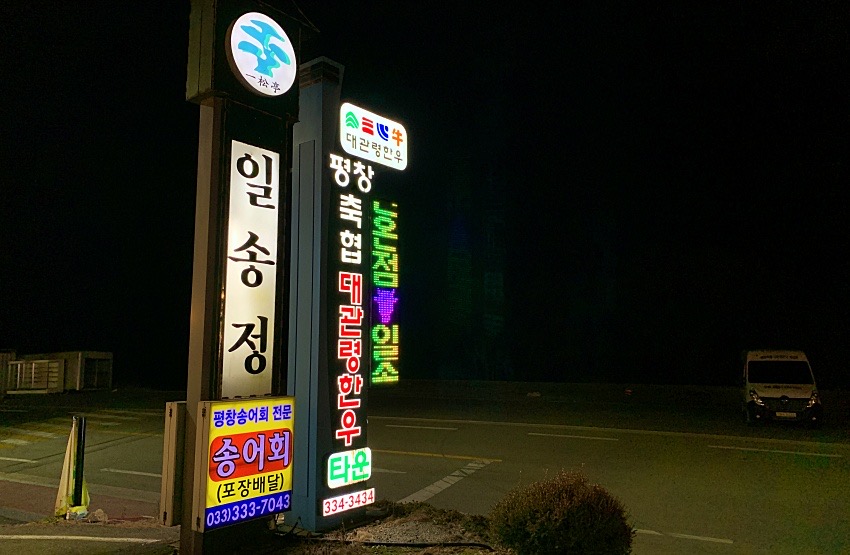 저녁을 무엇을 먹을지 고민하다 숙소로 올라가던 중 발견한 대관련한우 일송정에서 한우 구이를 먹기로 결정, 이 결정에는 아이들의 용돈이 투자되어야 한다는 전제가 붙어 있었다.