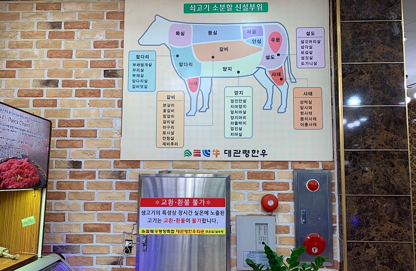 화재가 났었던 거로 알고 있는데 맞는지 모르겠다. 주차를 하고 정육코너로 가서 먹을 한우를 고르면 된다.