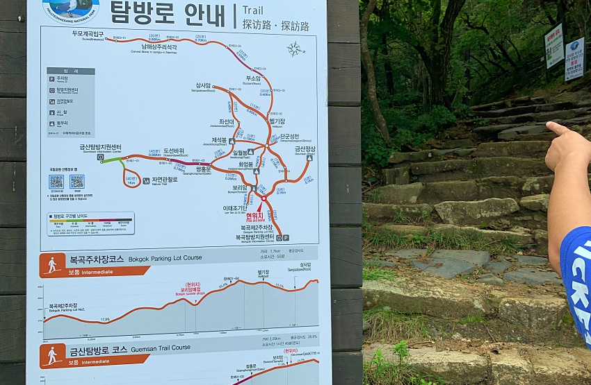 흔들바위라고 한다. 덩치 좋은 성인 몇이면 정말 흔들리는 듯 하다. 금산산장으로 내려가는 내리막길 중간에 위치하고 있다. 비가 내린 뒤라 계단이 조금 미끄러웠다.