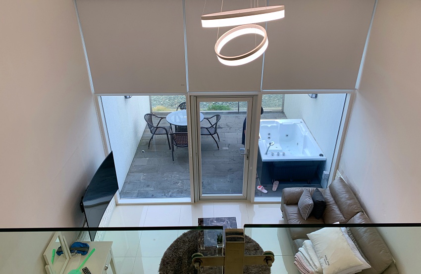 이 침실은 복층 구조로 되어 있고 한 층 계단을 걸어올라가면 된다.