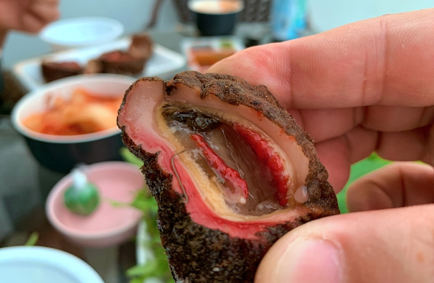 돌멍게는 오랜만에 맛있게 먹고 껍데기는 술잔으로 사용했다.