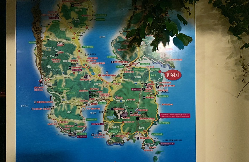 펜션 외벽에 붙어 있길래 위치가 어디쯤인가 싶어 찍어 보았다.