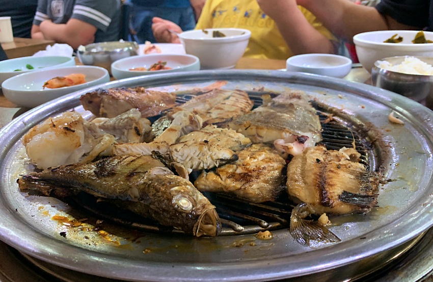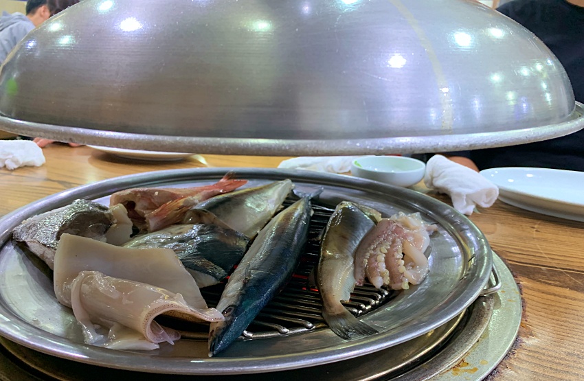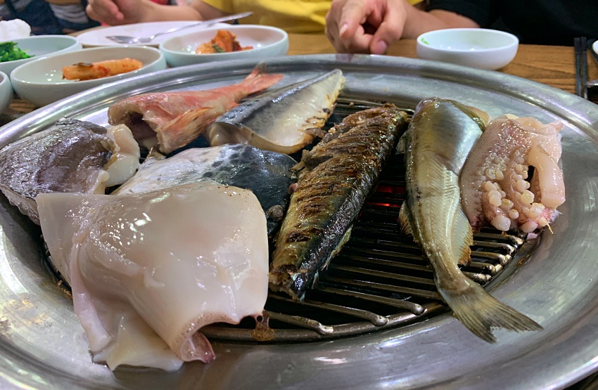 고등어, 오징어,꽁치, 도로묵 등등 뭐라뭐라 설명을 하면서 구워 주시는데 생선이름을 다 외우진 못했다.