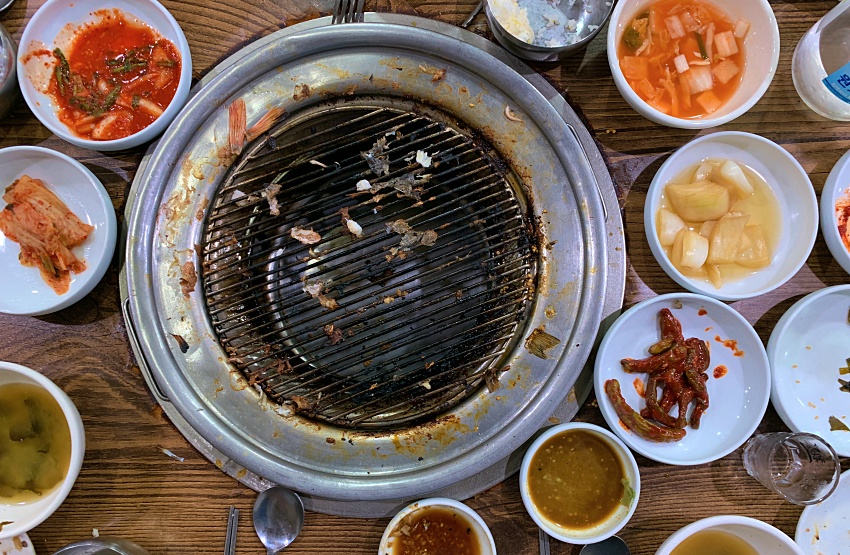 귀신같이 여기 저기 테이블의 고기를 타지 않도록 구워 주는데 정말 그것도 기술인듯하다. 얼마나 많이 구웠길래 그리도 잘 아는 건지..