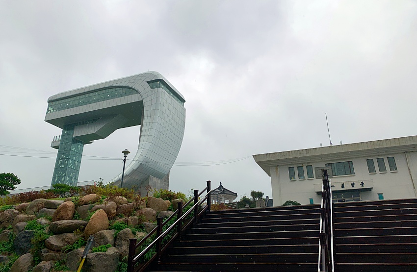 거의 우리나라 끝 지점까지 들어가는 것이라 차도 없이 한적하고 태풍 여파에 더욱 더 한적하게 느껴졌다. 도착 무렵 비가 살짝 소강상태라 주차를 마치고 전망대로 향했다.