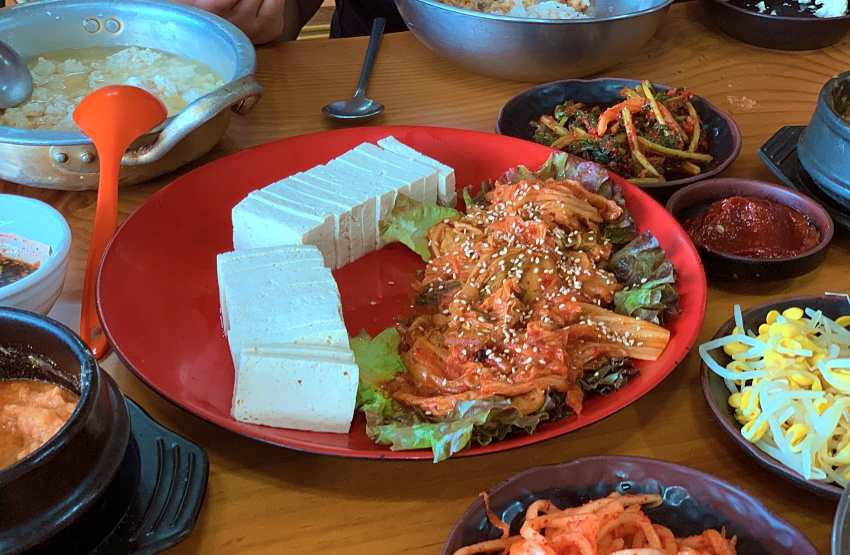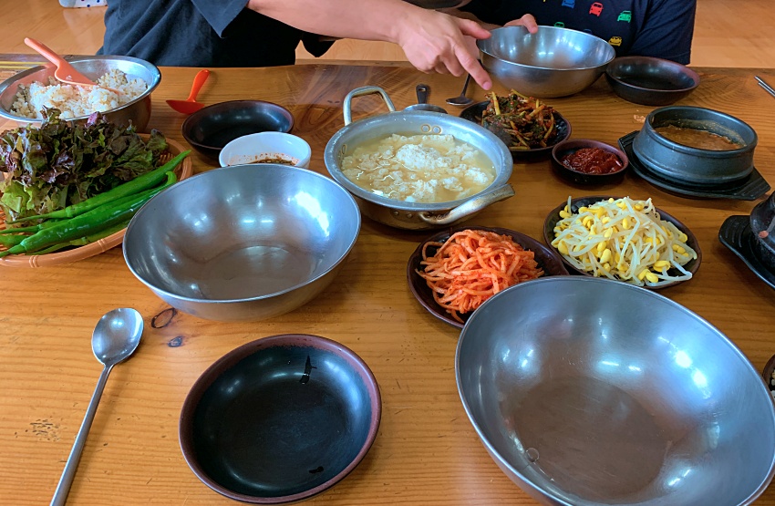 밥은 대접에 들어 먹을 수 있게 나온다. 양도 든든하고.. 그리고 보리밥이라 향수까지 느껴진다. 부들부들한 순두부도 맛있게 보이고 콩나물 나물과 무우생채도 입맛 돌게 한다.