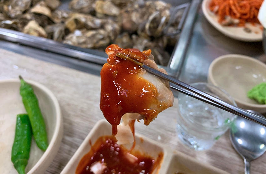 굴 맛으로 먹는건지, 초장 맛으로 먹는건지 모르겠지만 와시비 풀은 초장에 살이 잘 오른 굴 한점과 소주 한잔. 제대로다.