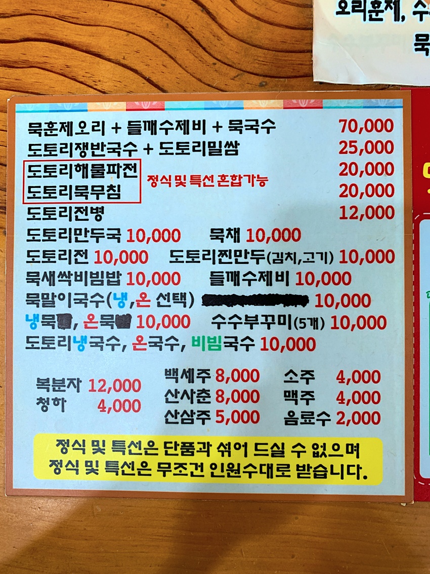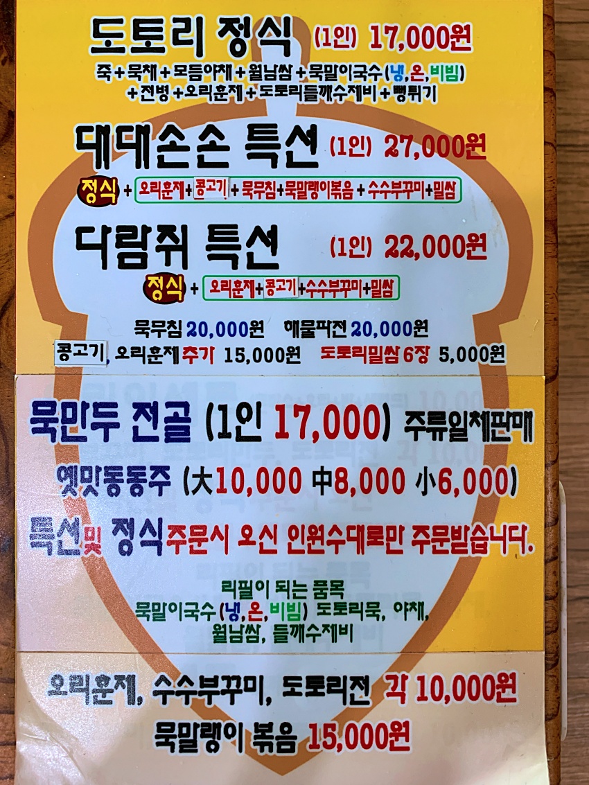정식 및 특선은 단품과 섞어 드실 수 없으며 정식 및 특선은 무조건 인우너수대로 받습니다.