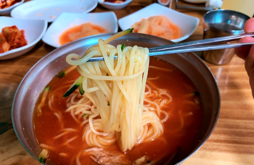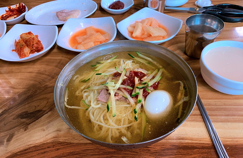 맛있는 제주 밀면, 산방식당에서.