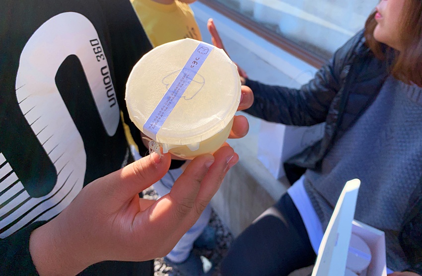 하나씩 받아 들고 인증샷을 찍고 이제서야 포스팅을 올리니 그참... 먹는 것을 좋아하는 정원이는 다소곳이 받아들고 인증샷을 찍었다. 제주 우무는 제주 해녀분들의 조언을 받아 우뭇가사리로 푸딩을 만들고 있다. 제주만의 특색이 강한 이 푸딩은 현재 인기절정.