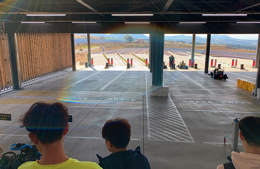 멀리 보이는 선이 출발선이다. 0.001초까지 다투기 때문에 출발에서 도착까지 운영을 아주 잘해야 좋은 성적이 나온다. 출발전 안전요원을 통해 조작방법이나 실격에 주의하라는 이야기를 꽤 많이 듣게 된다. 브레이크 테스트 및 핸들링 테스트가 끝나면 출발이다.