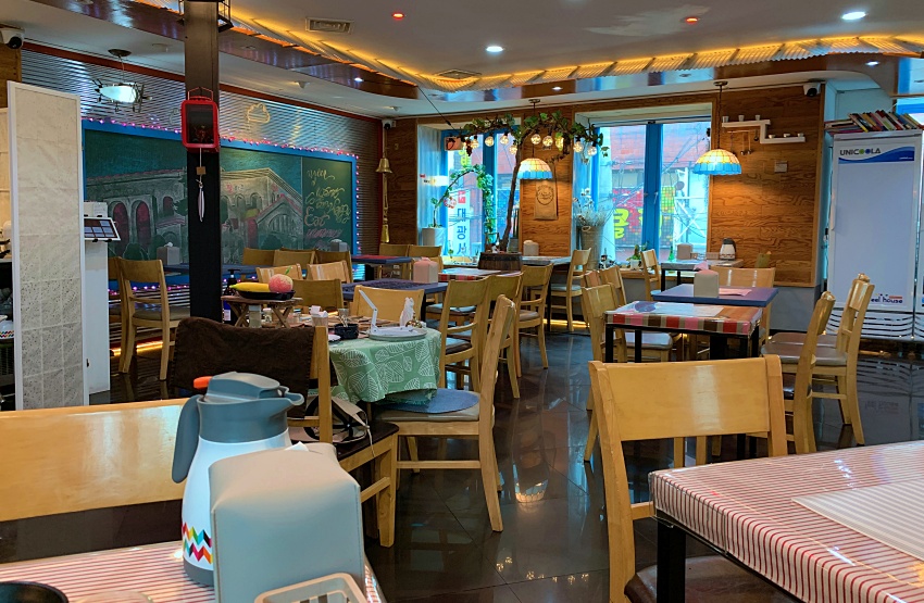 이날 먹었던 메뉴는 황금돈까스. 조금 늦은 시간에 점심을 먹기 때문에 손님은 우리가 전부다.