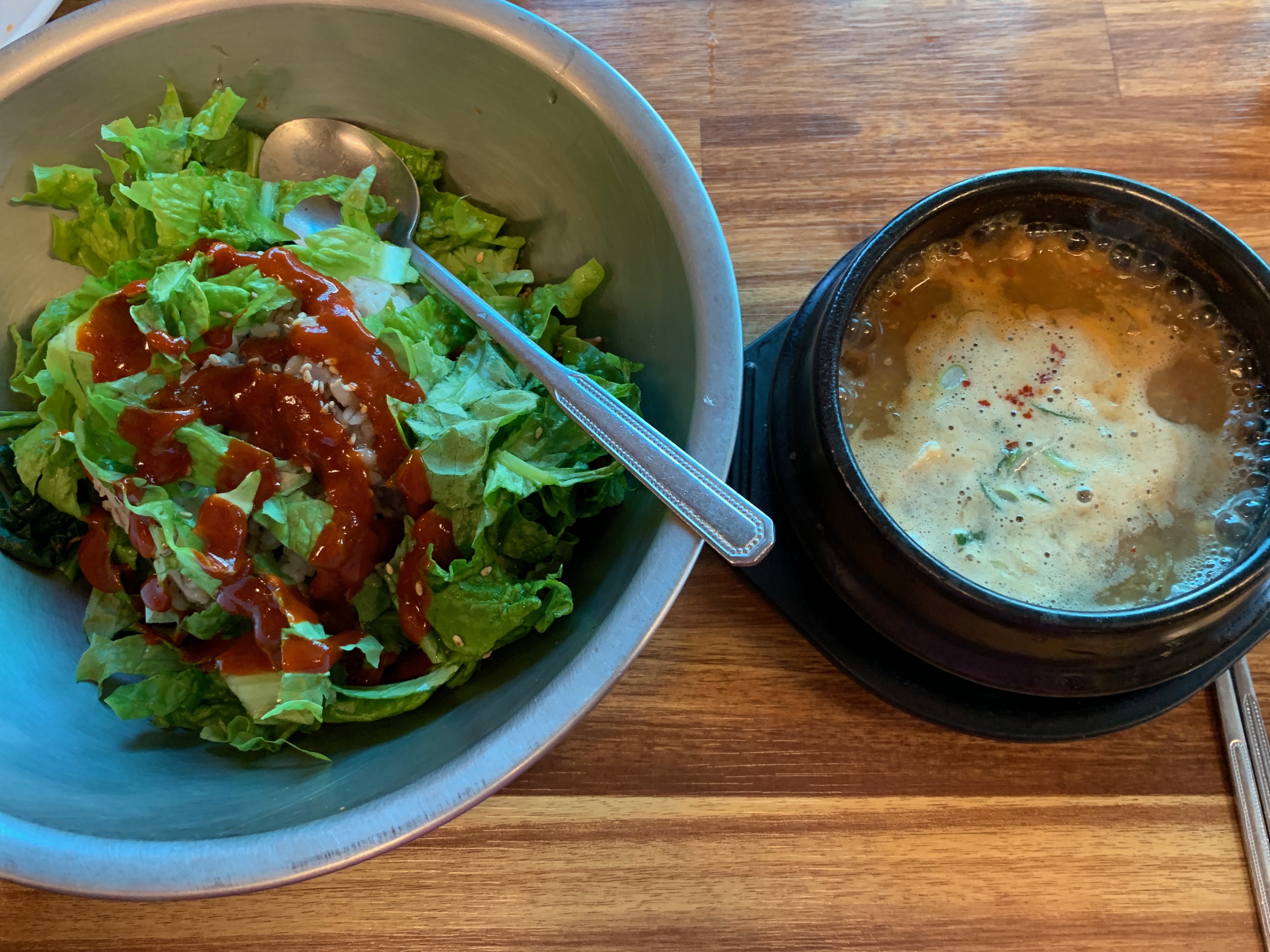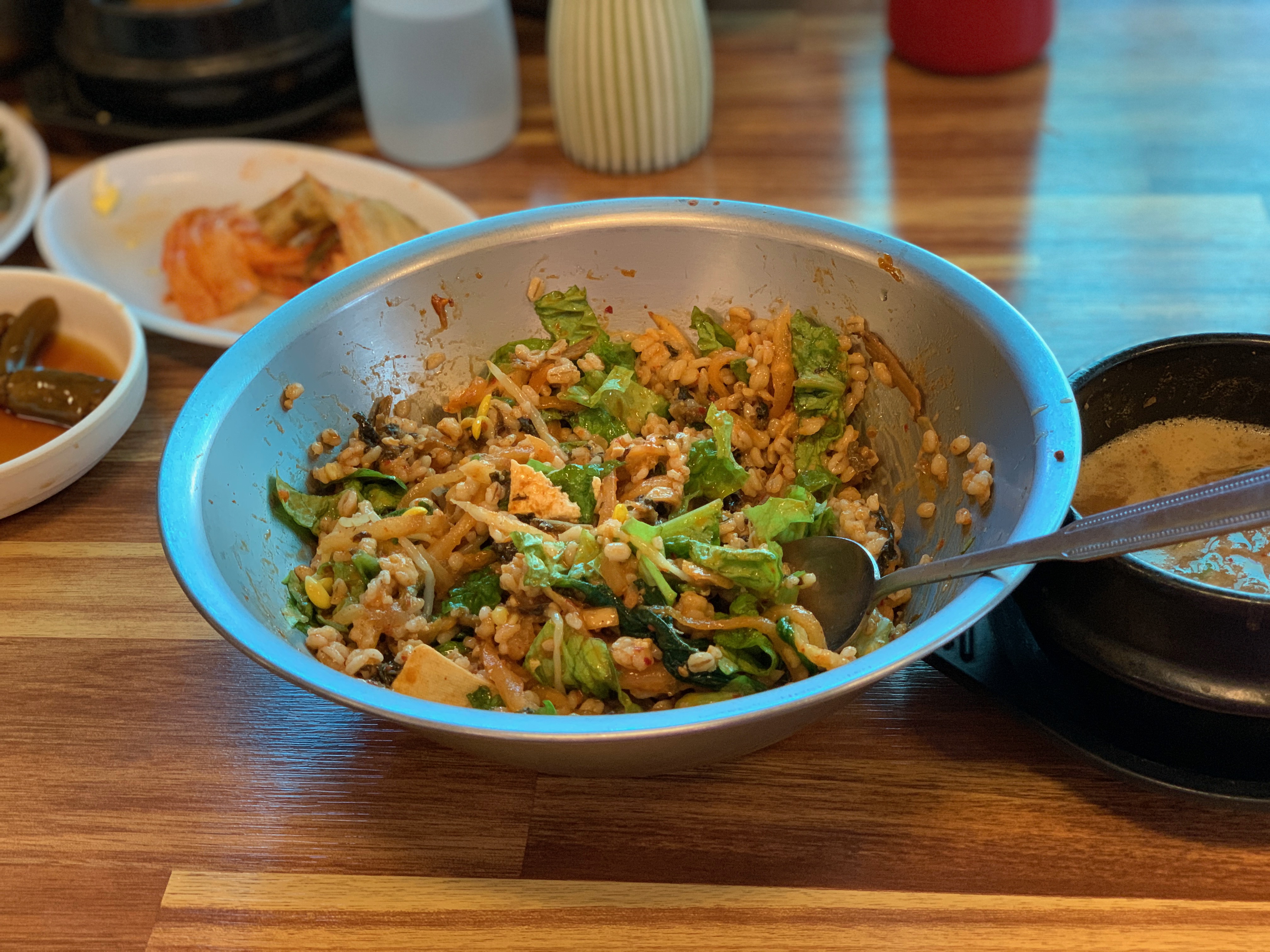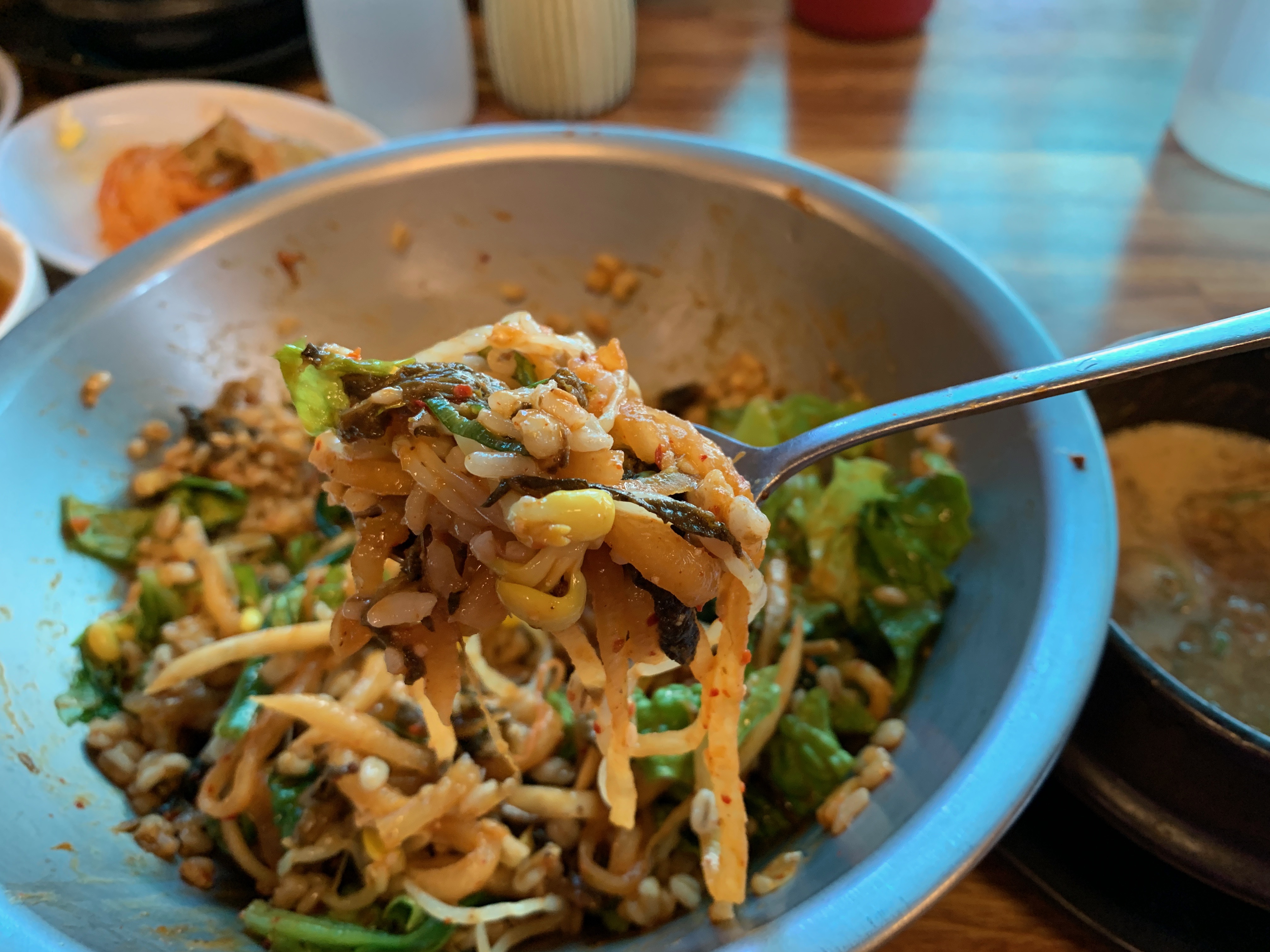 양푼이 비빔밥. 청국장이 따라 나와 비빔밥과 환상적인 조합을 이룬다. 역시 이런 비빔밥에는 청국장이 딱이지 라고 말하는 초딩6학년 정원 @@