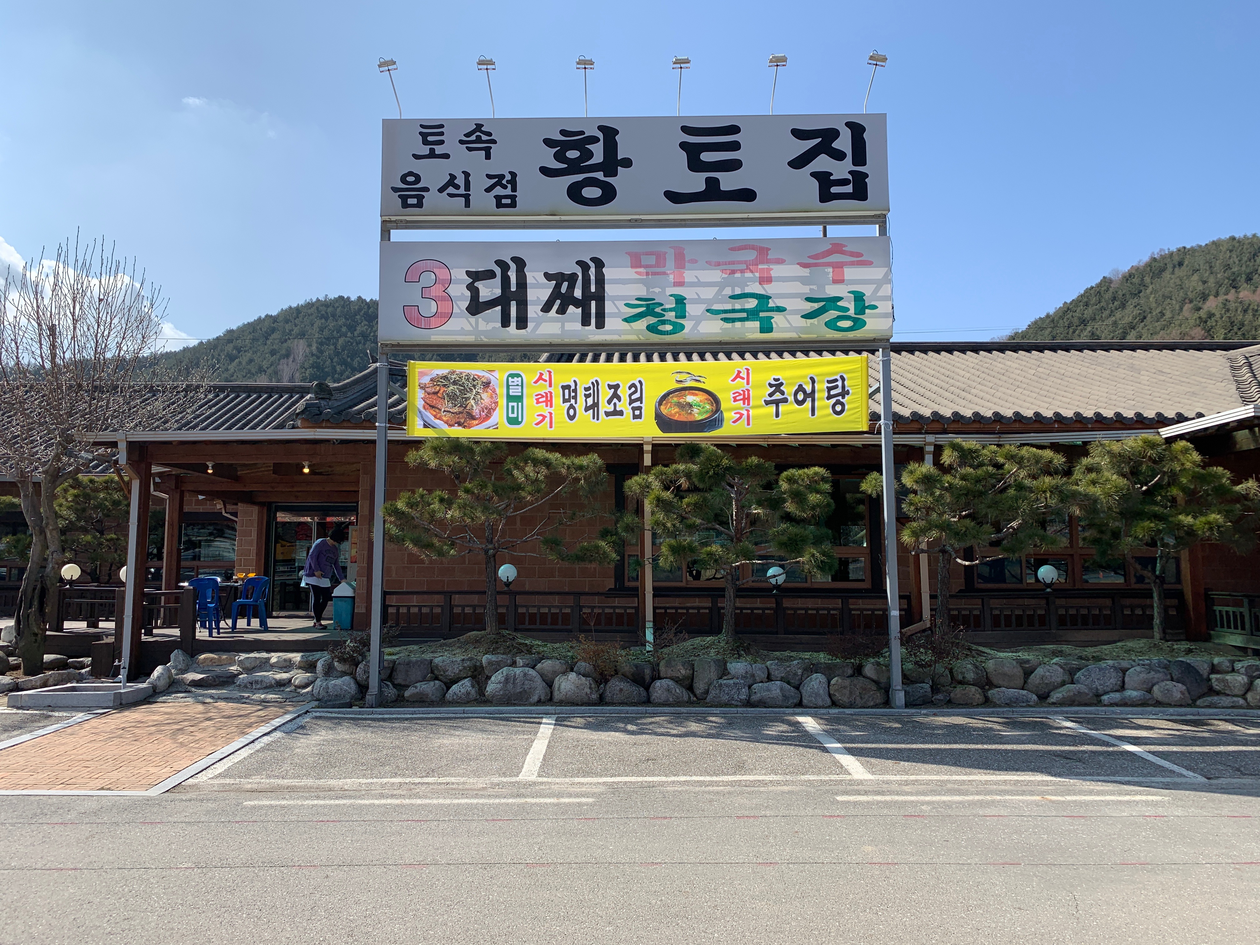 인제 황토집은 토속음식점이고 3대째 막구수와 청국장을 하는 집이라고 간판에 적혀있다. 몇번 인제를 오고 가면서 봐 둔 곳이라 아이들과 이야기해서 메뉴를 정하고 주차를 했다.