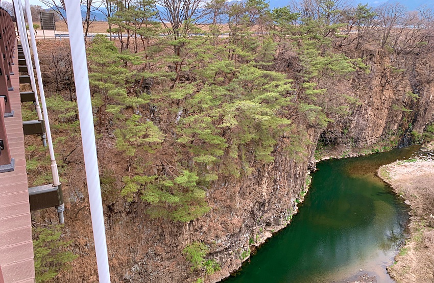 주차장에 차를 세우고 첫 다리를 거너며 아래를 내려다 보니 아찔하다. 그 높이가 어마어마하다. 시퍼른 물이 가득 고인 곳이 보인다.