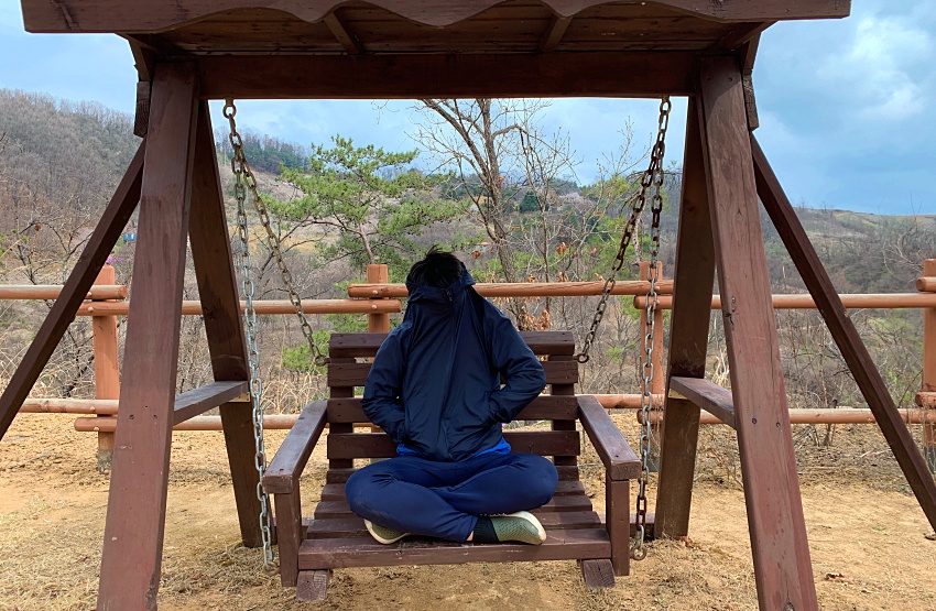두 아들 녀석은 장난 삼매경, 아내는 춥다고 난리, 난 조금 더, 조금 더... 걷고 싶다고 .. 바로 동상이몽이 따로 없다. 약 4km 더 걸어가면 비둘기낭이라는 이정표가 나오고 둘레길 주변에는 비오고 궂은 날씨에도 등산객인지 단체인지 모여 앉아 술판이 벌어지고 있었다.