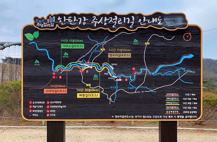 사실, 멍우리길은 한탄강 징검다리가 있다는 포스팅을 보고 찾아갔으나 협곡 아래를 아무리 찾아바도 징검다리는 보이지 않았는데 만약 징검다리를 찾아갈거라면 멍우리오토캠핑장을 내비게이션에 찍고 그 주변에서 찾는 것이 정답인듯하다. 여튼 우리는 이날, 실패했다.