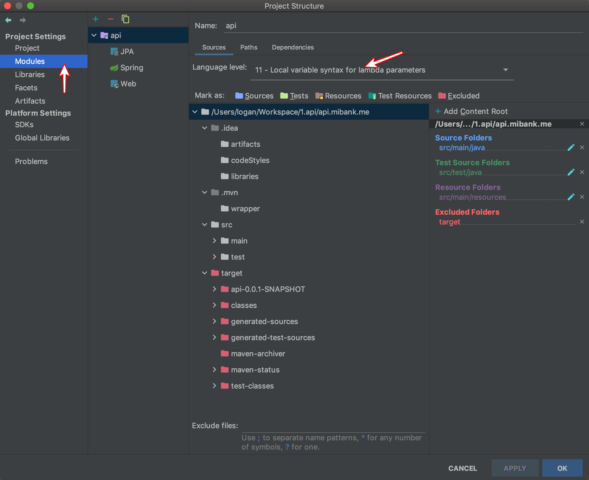 Modules 에 Lanuage level을 변경
