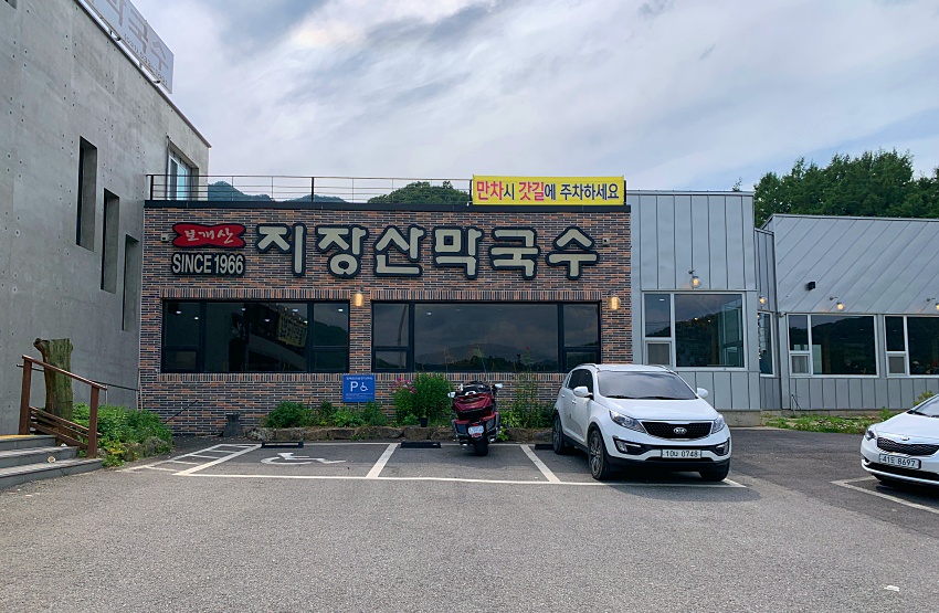 다만, 지장산막국수는 가끔 생각이 나는 음식이기도 하다. 자주 가는 곳은 아니지만 새로운 건물을 짓고 식당 규모가 커져갈 때마다 찾아가 먹은 셈이 되는데 넓은 주차장과 식당 건물이 눈에 띈다.