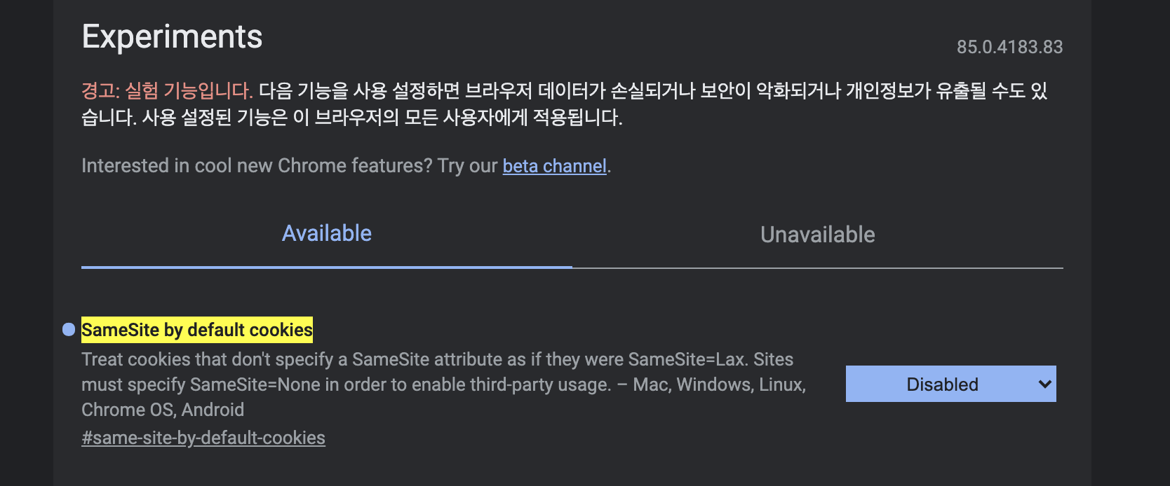 브라우저 쿠키(Cookie)의 SameSite속성은 서로 다른 도메인간의 쿠키 전송에 대한 보안을 설정하는 것인데 이게 좀 복잡스럽긴한데 그냥 Disabled로 설정하고 글 쓰고 다시 원복? 하면 되긴하는데 귀찮다..귀찮아... 그냥 Disabled로 사용한다. ㅎㅎㅎ