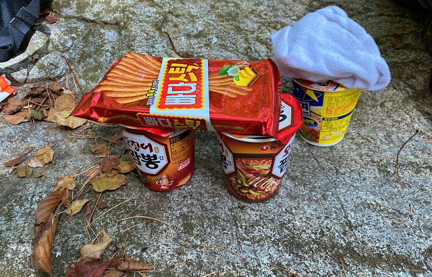 김밥, 라면, 물을 챙겨서 가볍게 산책한다는 의도에서 출발한 산행은 올라가는 시간만 1시간 30분이 소요될 정도로 길고 길었다. 어른은 괜찮지만 8살, 13살 초등학생들에겐 길고 긴 시간이었을 것 같다.