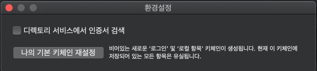 이 키체인접근은 응용프로그램 폴더안에 > 유틸리티 안에 > 키체인 접근을 실행한 후