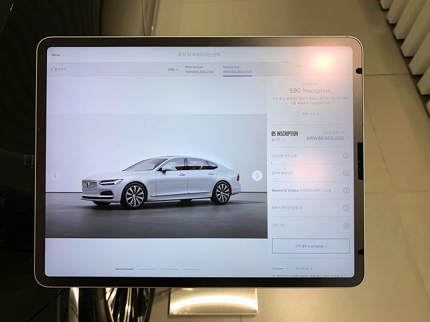 정비중인 시간에 전시되어 있는 S90을 경험해보았다. 최근 손흥민선수가 모델이 되어 광고했던 모델인데 19년 XC60과는 좀 다른 부분들이 있었다. 갈수록 더 세련되고 고급스러워진 느낌이다.