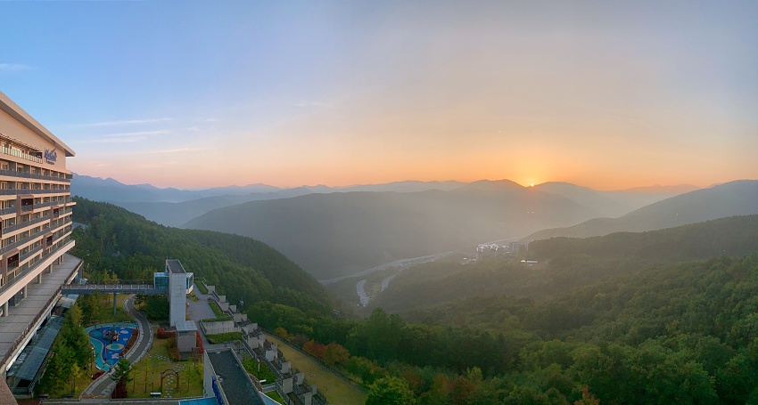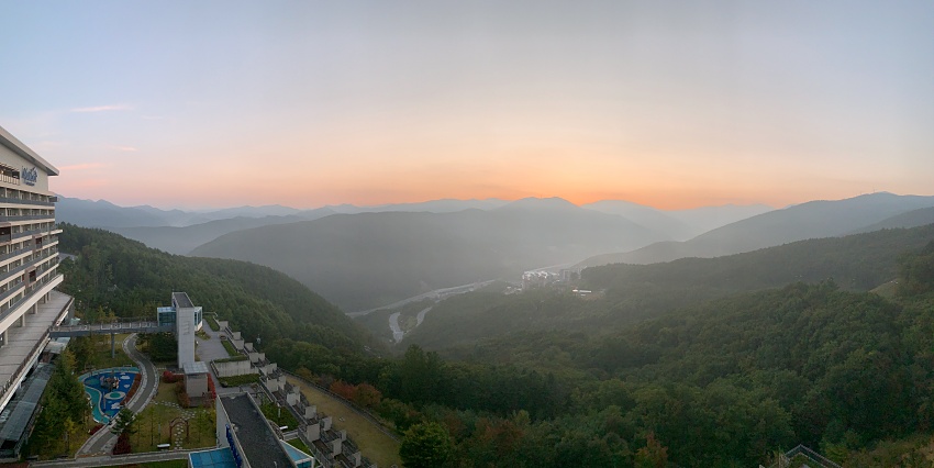 살짝 파노라마로도 담았는데 다행히 숙소가 고층이라 전망이 더 좋고 탁 트인 시야로 인해 해맞이 감상을 따뜻한 숙소에서 할 수 있어 더 없이 좋았다는 사실.