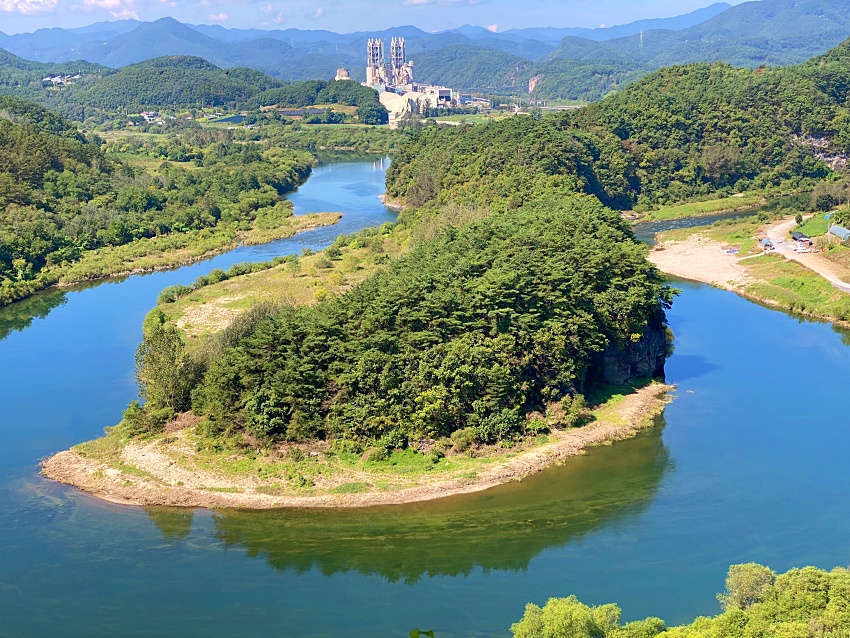 티비 프로나 예능 프로에서 참 많이 나오는 곳인데 조금 확대를 해서 찍었는데 저어기 저쪽 북쪽 끝에는 공장이 가동되어 돌아가고 잇었다. 이 주변일대는 석회암 관련 공장들이 꽤 많은 편이다.