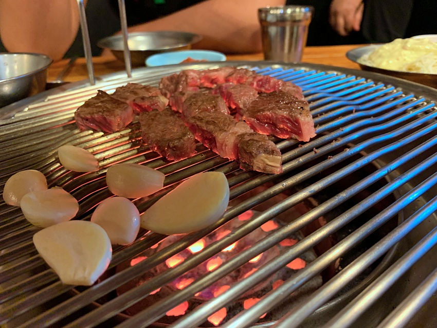 그렇게 숙소로 향하던 중, 정선 고한 하이원리조트 앞에서 저녁 식사를 하고 숙소로 들어가기로 했다. 메뉴는 소고기 구이. 바로 구공탄구이라는 집을 찾았다. 이번 저녁은 법카 찬스를 쓰기로 하고 한우 소고기로 정했다. 여행 마지막날, 뗏깔좋은 한우 구이로 한상 먹고 숙소로 들어갔다.