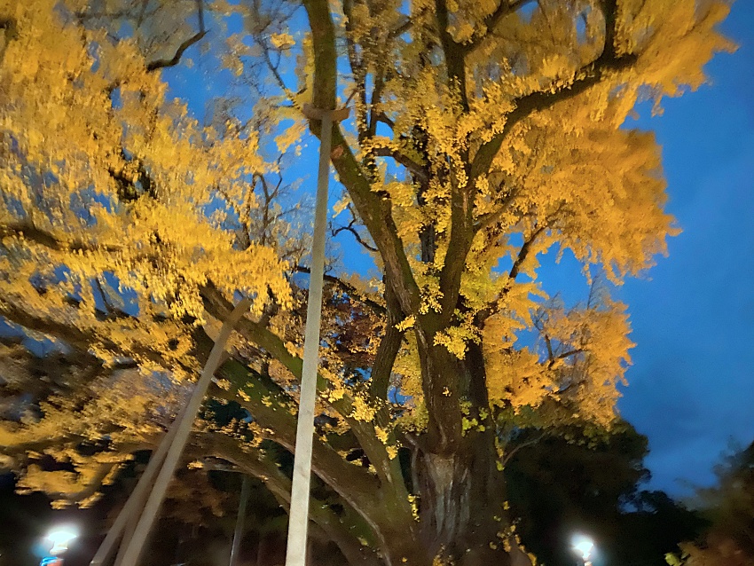 아쉬움을 달래고 연산군묘역 주변으로 산책을 가보니, 오래된 은행나무가 있고 단풍이 노오랗게 물들어 보기 좋다. 가로등불에 비친 모습이 너무 좋아 아이폰11PRO카메라의 야간모드를 촬영을 하니 더 빛을 더하는 것 같이 나온다. 멋지다.
