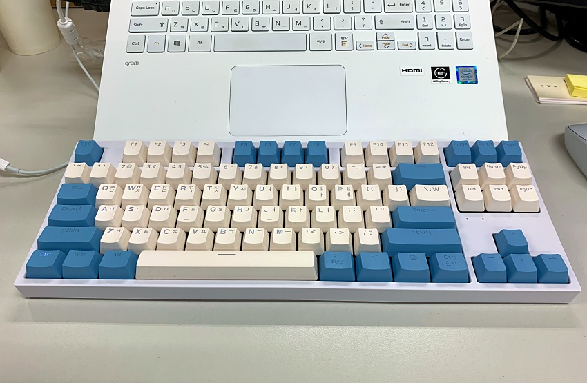 항상 맥북을 사용하다 이번 회사에서는 윈도우즈가 탑재된 그램이라는 노트북으로 일을 하게 되었다. 프로젝트를 할 때는 고객사에서 장비를 지급해주기 때문에 사무실에 있을 때만 사용하는 장비지만 그래도 키보드가 필요하다는 생각을 하게 되어 기계식으로 된 키보드를 알아보는 중 가성비 좋은 키보드가 있다고 해서 구입을 해서 사용하고 있는데 나쁘지 않다.