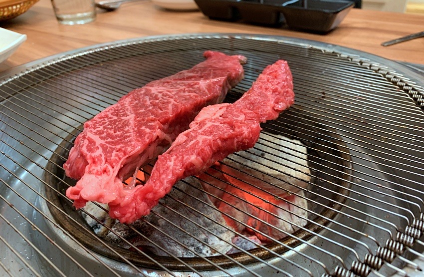 숯은 완전 좋지는 않지만 맛있는 한우에 불향을 입히기에는 충분했다.