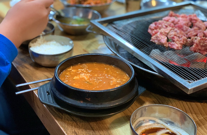 동적불고기는 술 안주로 딱 좋은 불고기인데, 기본 찬으로 나오는 청국장의 맛도 기가 막힌다. 바로 밥 도둑이 따로 없다. 처음에 불고기 한 판 먹고 나면 아이들이 스마트폰으로 눈을 돌릴 때쯤 꼬들살로 소주 안주를 보충해서 거나하게 먹고 나올 수 있다.