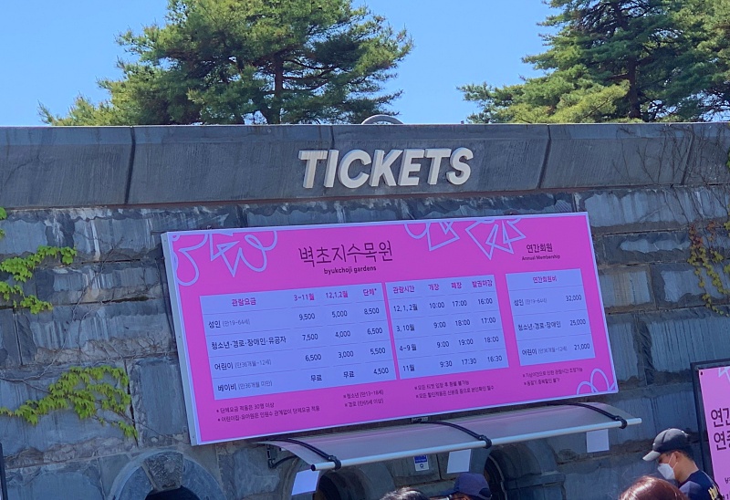벽초지수목원 관람요금표.
