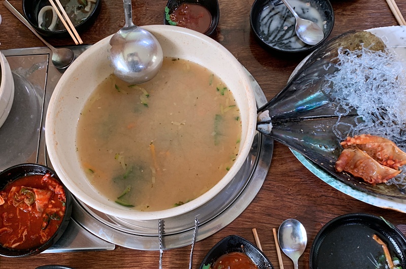 알밤만한 백합이 들어 있어 어찌나 쫄깃하고 맛있던지, 그리고 국물은 또 얼마나 진국이었던지.. 싹싹 다 퍼먹고 건져먹고 겉저리 김치와 함께 배터지게 먹었다. 단, 보통의 바지락칼국수보다 양은 조금 적은 편이었다.