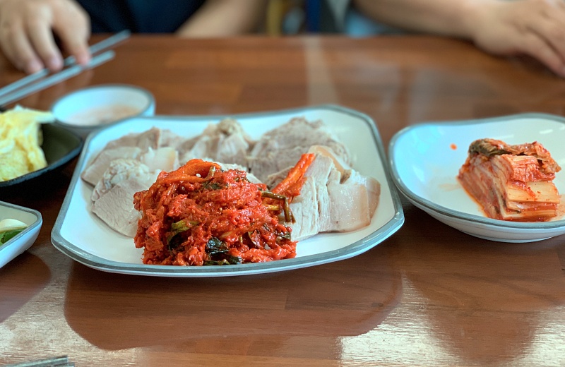 전형적인 보쌈수육의 한 장면.