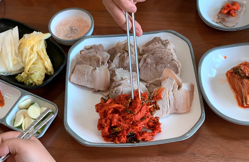 전형적인 보쌈수육의 한 장면.