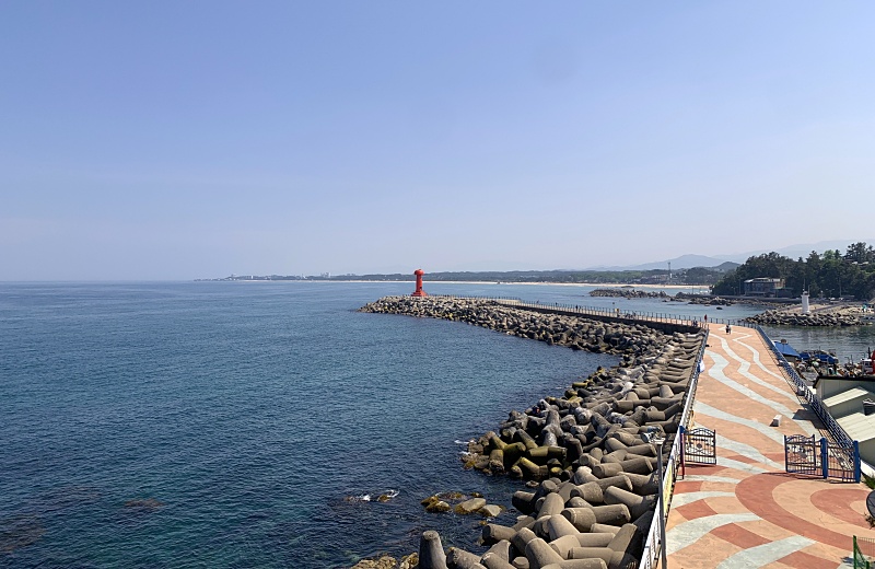 가끔 점심식사하러 가는 식당 벽면에 남애항 부두가 사진이 크게 걸린 곳이 있는데 실제 그 풍경을 볼 수 있어 좋았던 것 같다. 요즘 바닥이 훤히 보이는 이런 전망대가 워낙 많아서 새롭진 않았다. ㅎㅎ