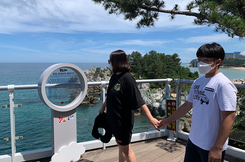 추암 촛대바위 옆에 만들어진 출렁다리.