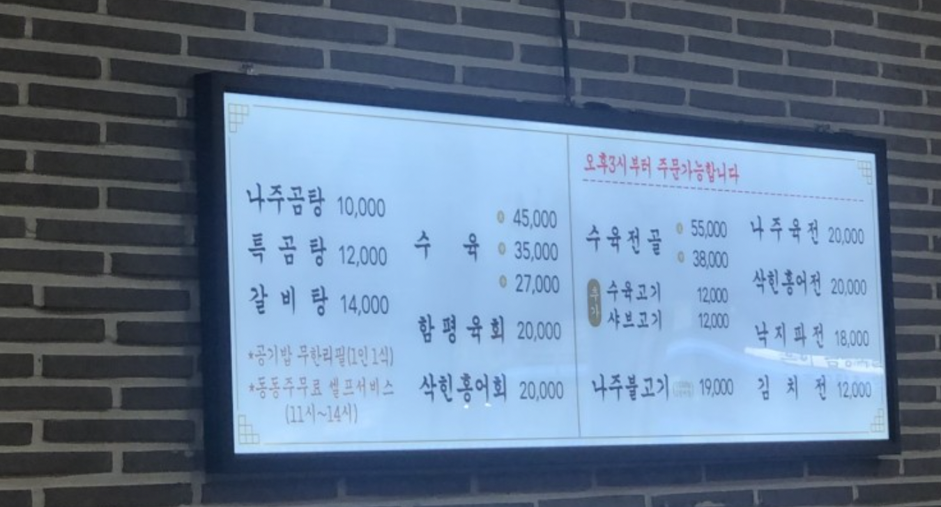 남대문호떡을 하나씩 먹었더니 배가 덜 고프다고 해서 두 아들 녀석은 나주곰탕 특을 주문하고 나눠 먹었다.