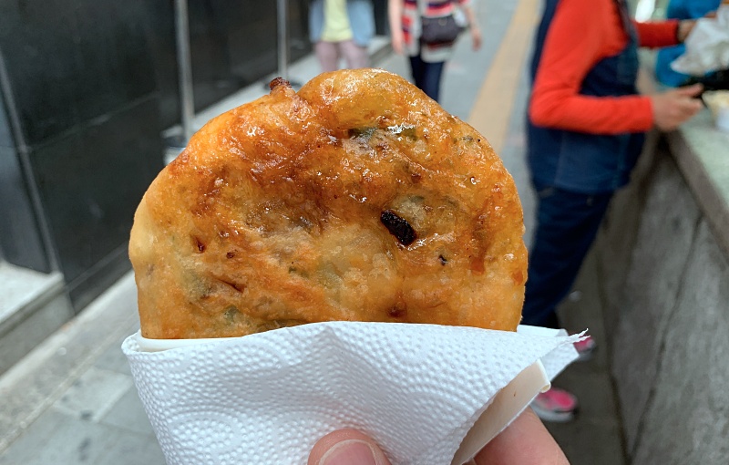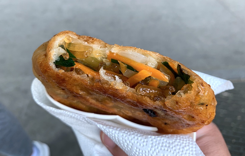 호떡을 베어 물어보니, 안에는 깔끔하면서 느끼한? 야채잡채가 들어있다. 겉바속촉의 전형적인 호떡이라고 보면 되겠다.