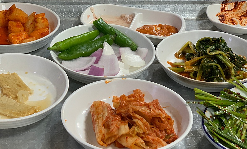 먹는 도중 찍는 사진이라 ... 엉망이지만 찬은 쟁반에 담겨져 잘 나오는 편이다.
