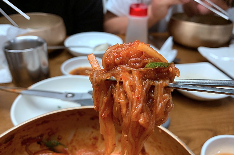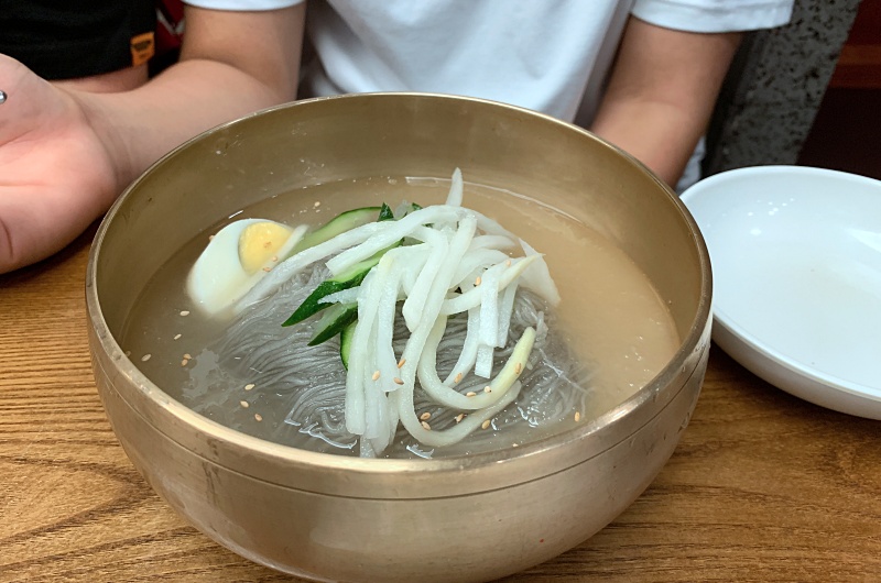 우리는 찐만두 하나와 회냉면, 그리로 물냉면을 주문했다.