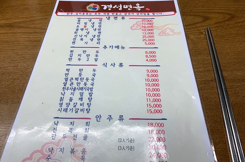 경성면옥은 다양한 메뉴가 있다.